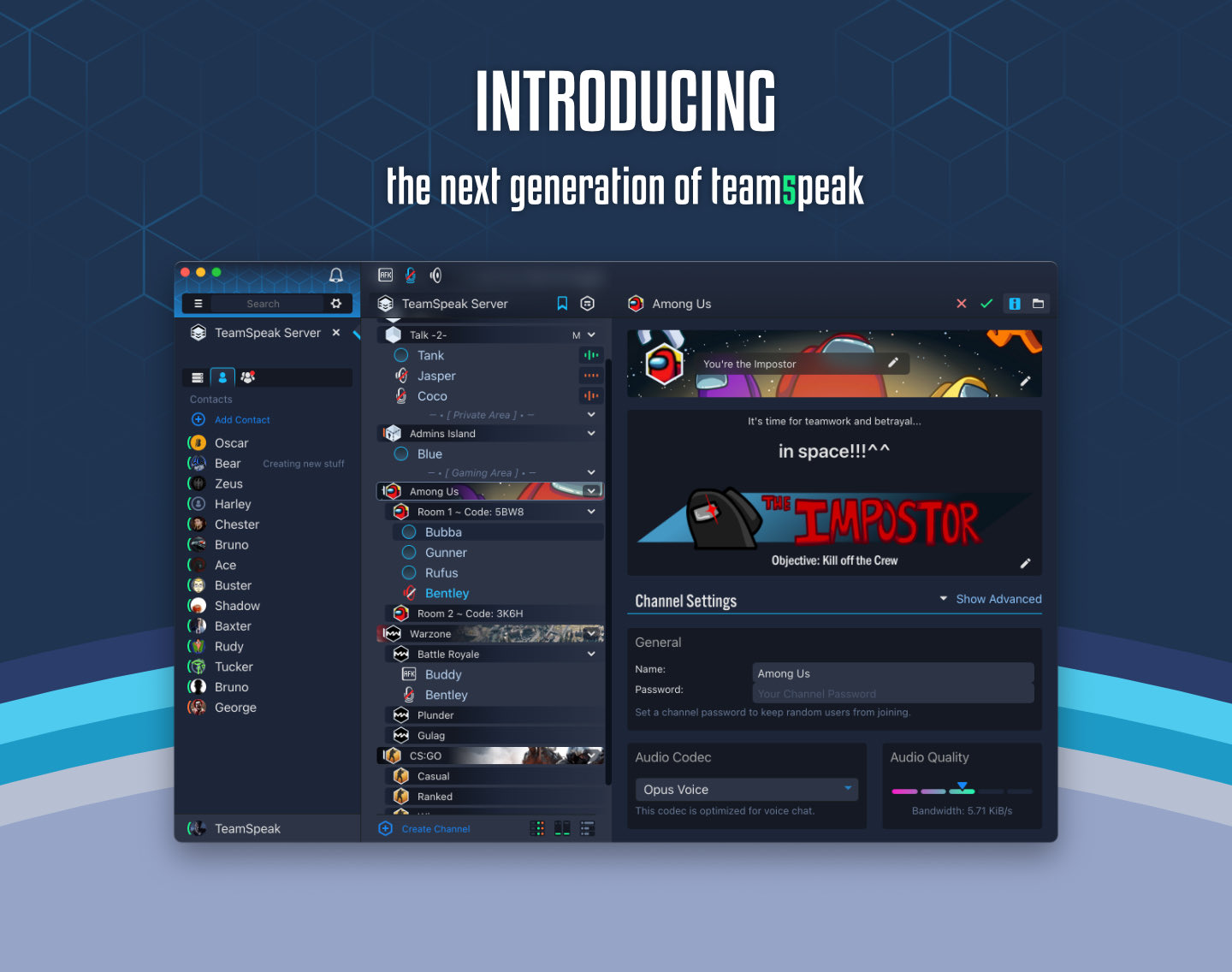 TeamSpeak uses Opus but it also relies on the CELT and Speex audio codecs. Yep that might actually work. TeamSpeak 3 is developed for video game communities with the Opus codec.